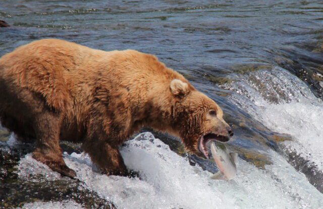 Similar to other bear species, brown bears are dormant during the winter, resulting in a low body temperature and low heart rate. Brown bears emerge from their dens around April and return in the Fall. Female brown bears begin mating after they are four to six years old. While some male brown bears can reach 860 lbs., Kodiak bears can weigh up to 1,500 lbs.